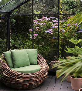Застекленная беседка выглядит привлекательно, особенно если подбирать конструкции под расцветку фасада постройки. А для более необычного вида можно выбирать, например, безрамные каркасы и раздвижные системы. Такие виды остекления беседок придают постройке современный стиль и делают её визуально более просторной.