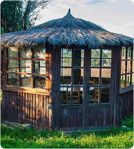 Застекленная постройка — это не только комфортно и удобно, но еще и эстетично. Можно подбирать различные материалы — алюминий, дерево, пластик, которые будут гармонично сочетаться с фасадом и кровлей. Кроме этого, можно устанавливать окна с цветными каркасами и стекла с витражами. Сегодня доступны разные варианты остекления беседки, которые позволяют подобрать решение под любой стиль и бюджет.